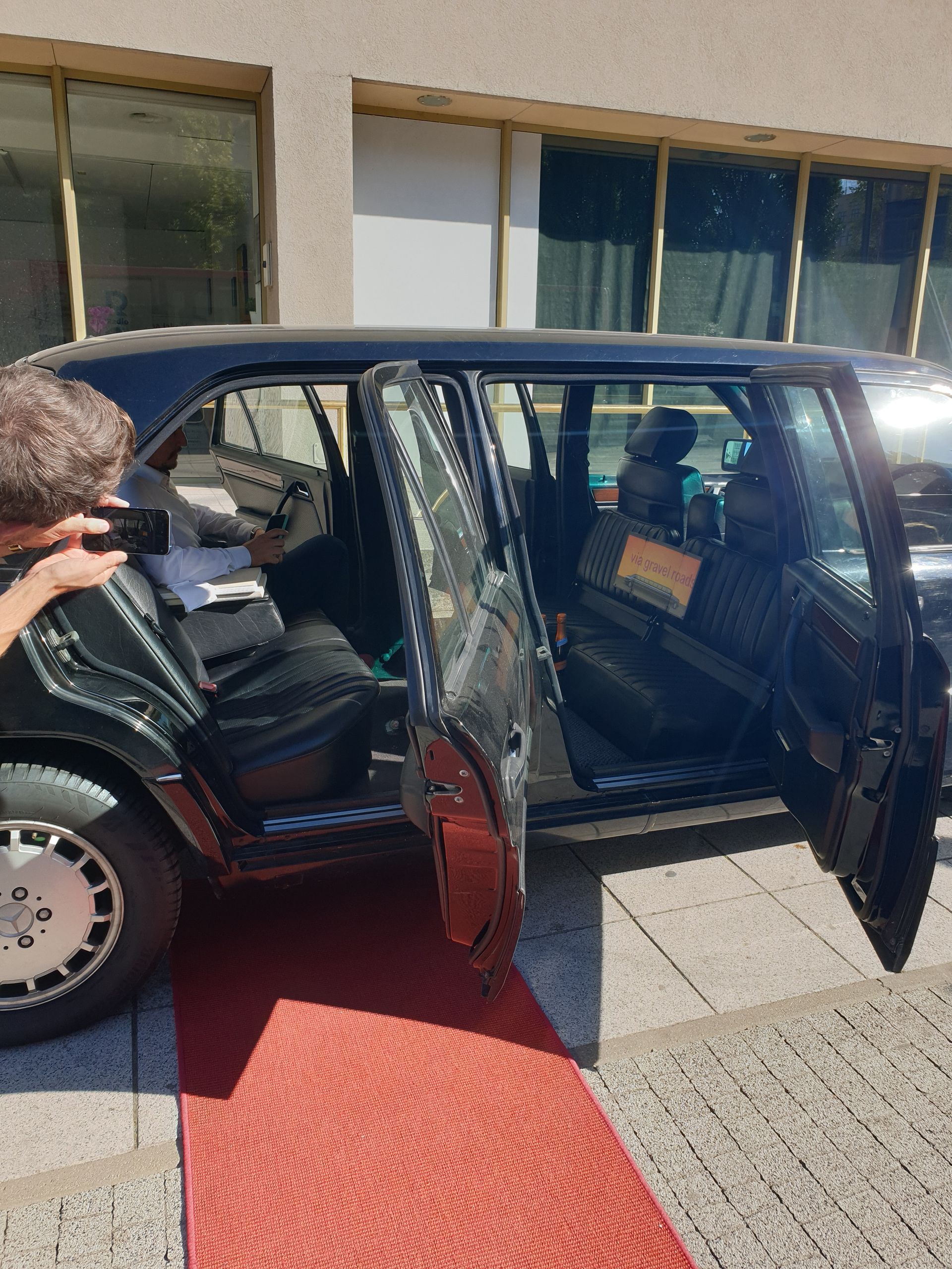 Our project MOBILISTAN is to be understood as a purely ART PROJECT dealing with issues of mobility, territorial limits, recognition, marginalization, freedom to travel and the desire to belong. Mobilistan is established on the area of a state limousine, thus forming the territory that can be entered or exited through the doors of the vehicle. Mobilistan has its own flag, anthem and passport. There are four permanent residents of Mobilistan, playing simultaneously several roles like State President, Foreign Secretary, Minister of Finance, Interior Minister etc. The four permanent residents are: Barbara Repe, Anne Manss, Manaf Halbouni and Christian Manss. They will determine the fortunes of Mobilistan: who is allowed to become a citizen, who gets a visa or where is the temporary location of Mobilistan.